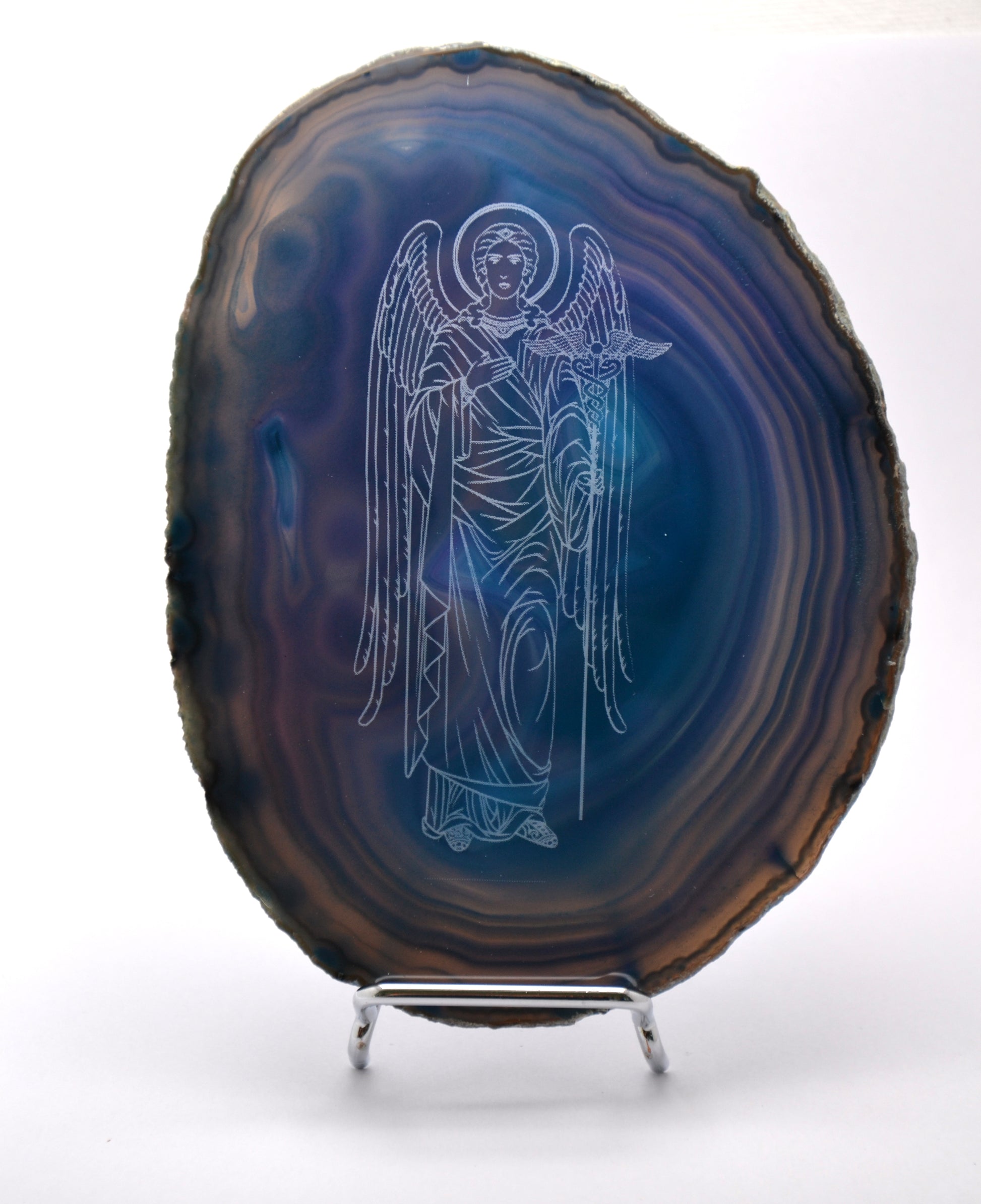 Prírodné farbené gravírovaný achát s motívom archanjela Rafaela: