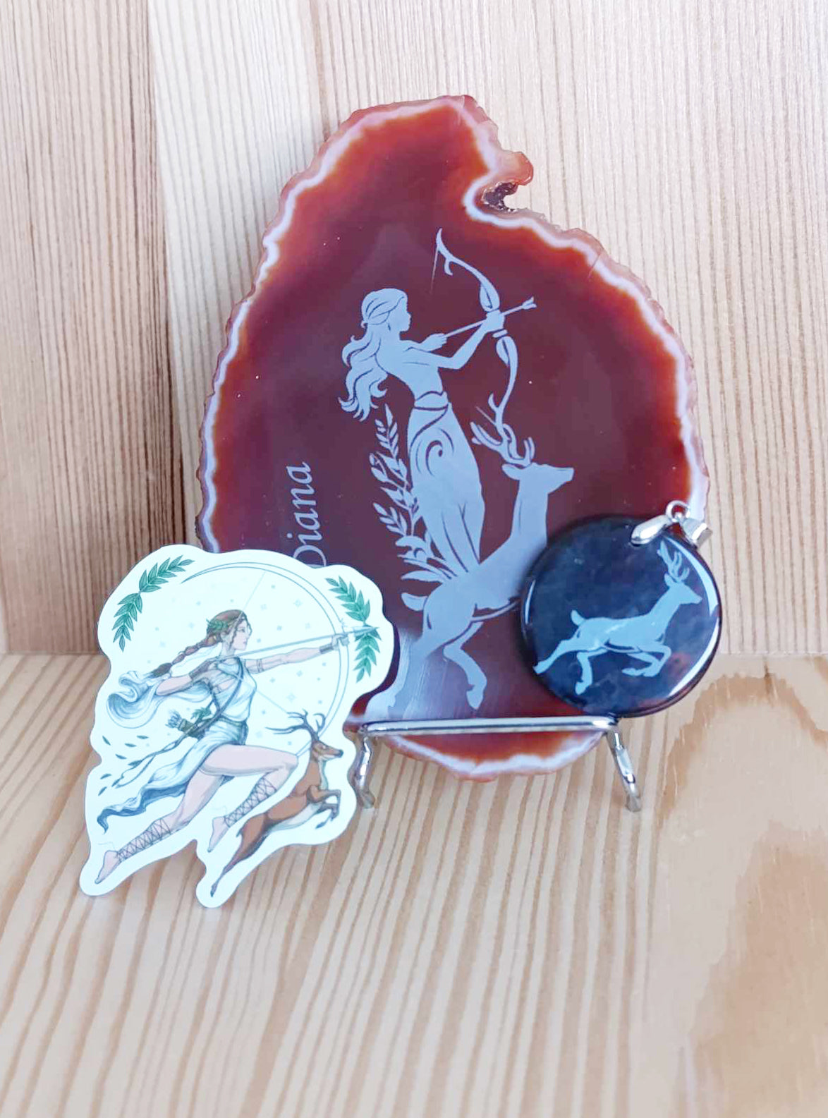 Nálepka s prírodným motívom: Pre dotvorenie celkového zážitku prináša táto sada aj nálepku so symbolmi bohyne Diany.