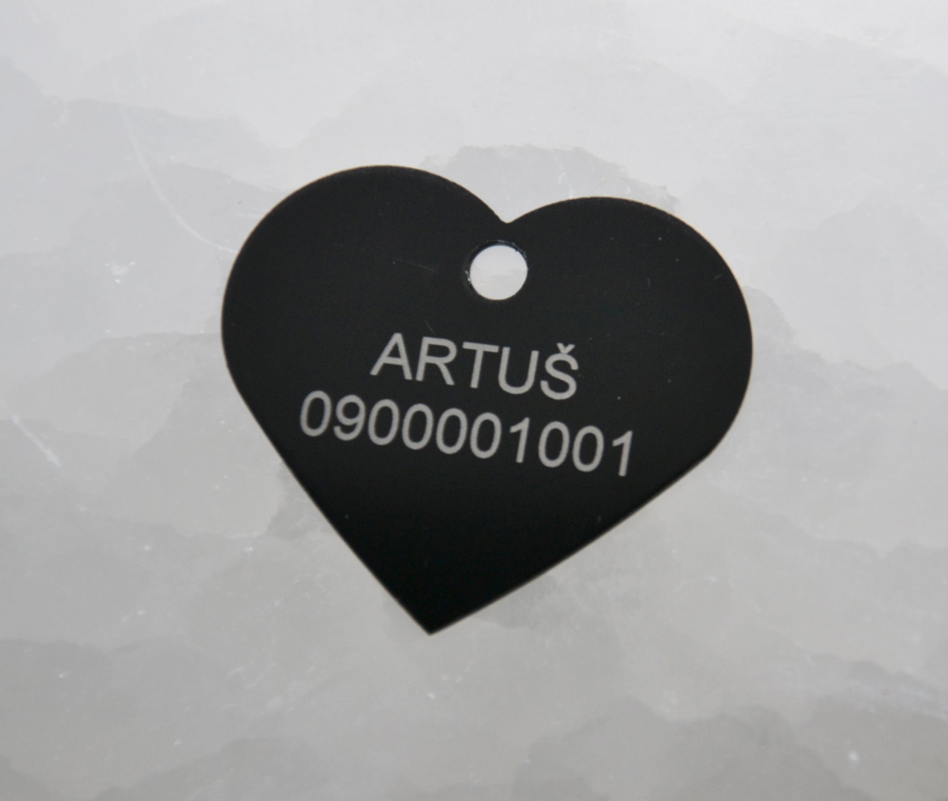 Hliníkový identifikačný štítok pre domáce zvieratá.
