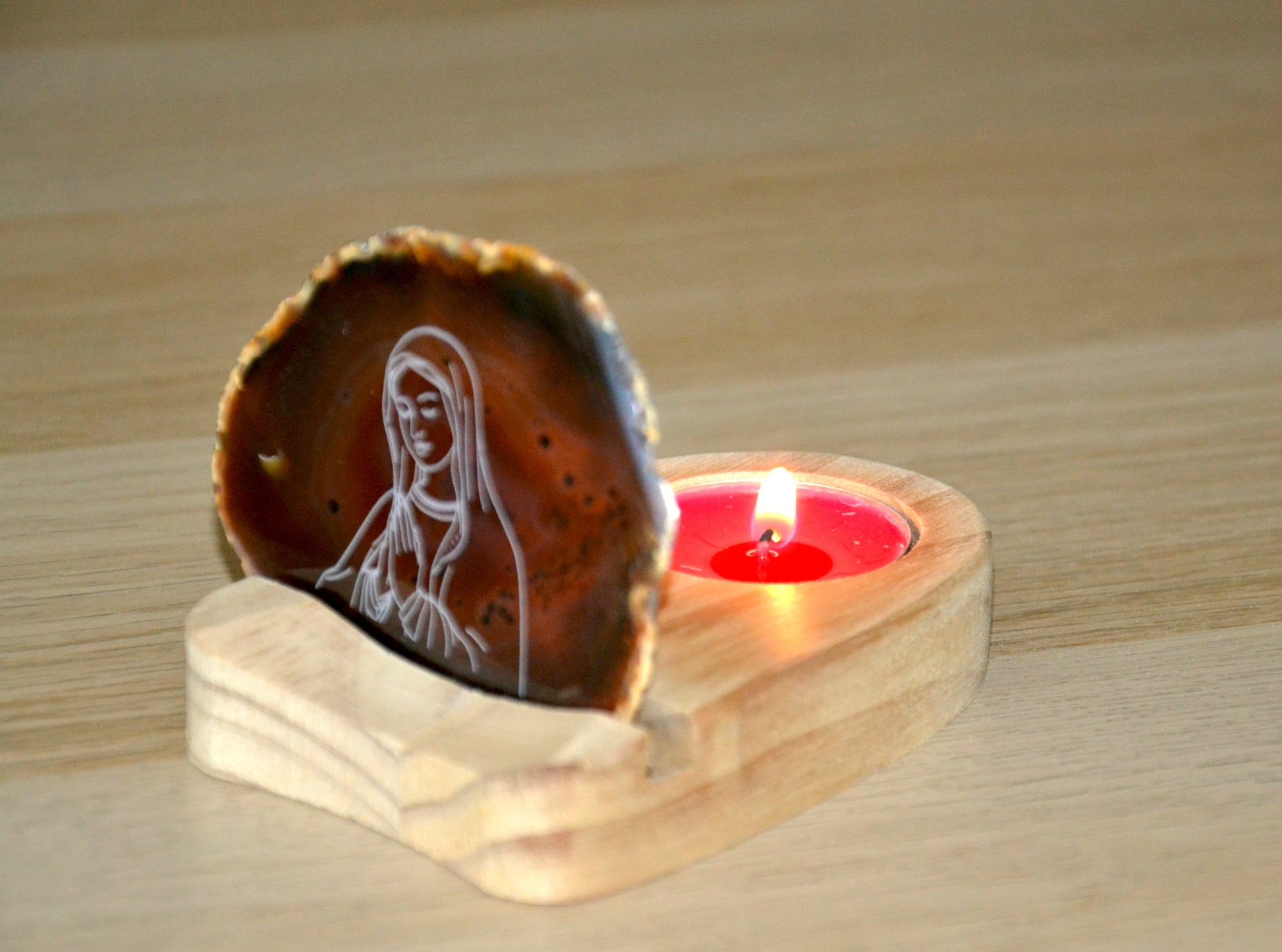 Achát ako stabilizujúci kameň dokonale dopĺňa symboliku Magdalény, ktorá predstavuje pevnú vieru a vnútornú silu.