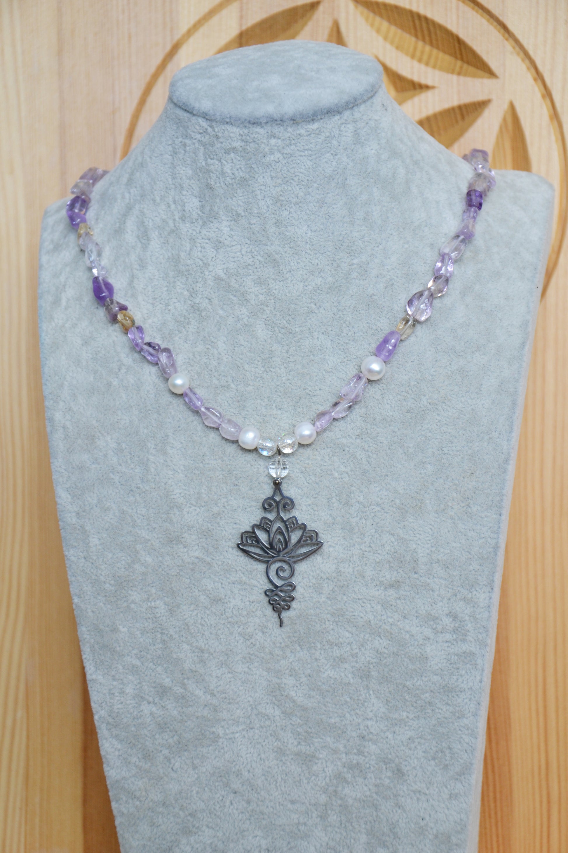 Jedinečný dizajn: Kombinácia ametrínu, riečnych perál a prívesku lekna vytvára originálny a nezameniteľný šperk.