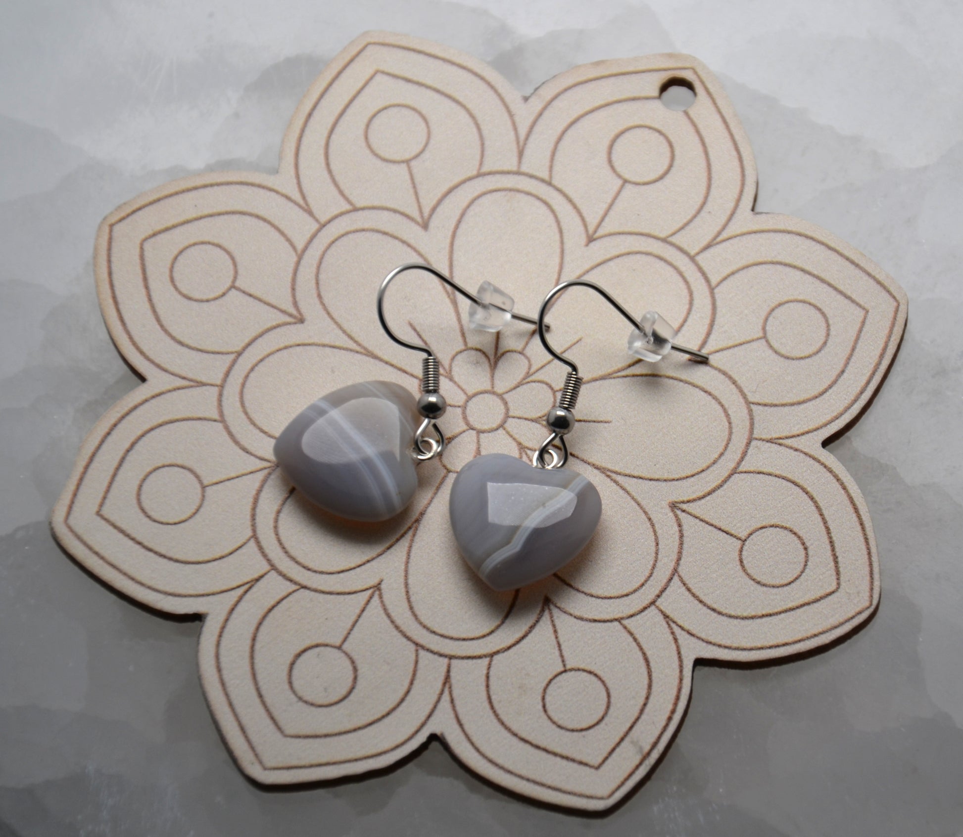 Jemné náušnice, v tvare srdca, sú nádherným doplnkom pre všedné aj nevšedné dni. Tvorí ich srdce z prírodného achátu a háčik z chirurgickej ocele.