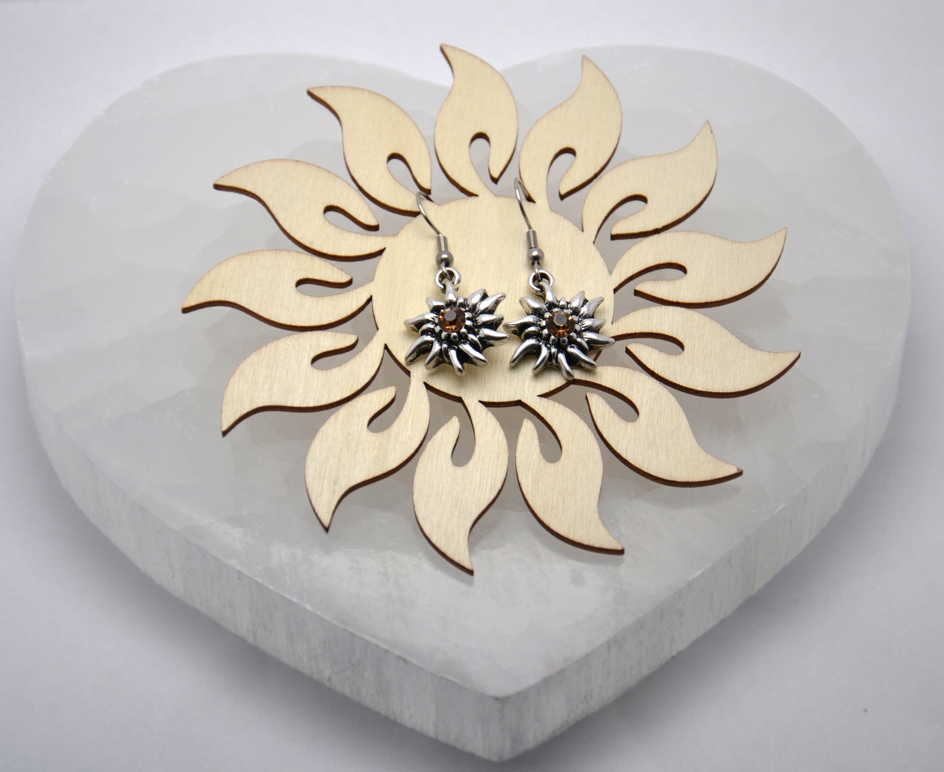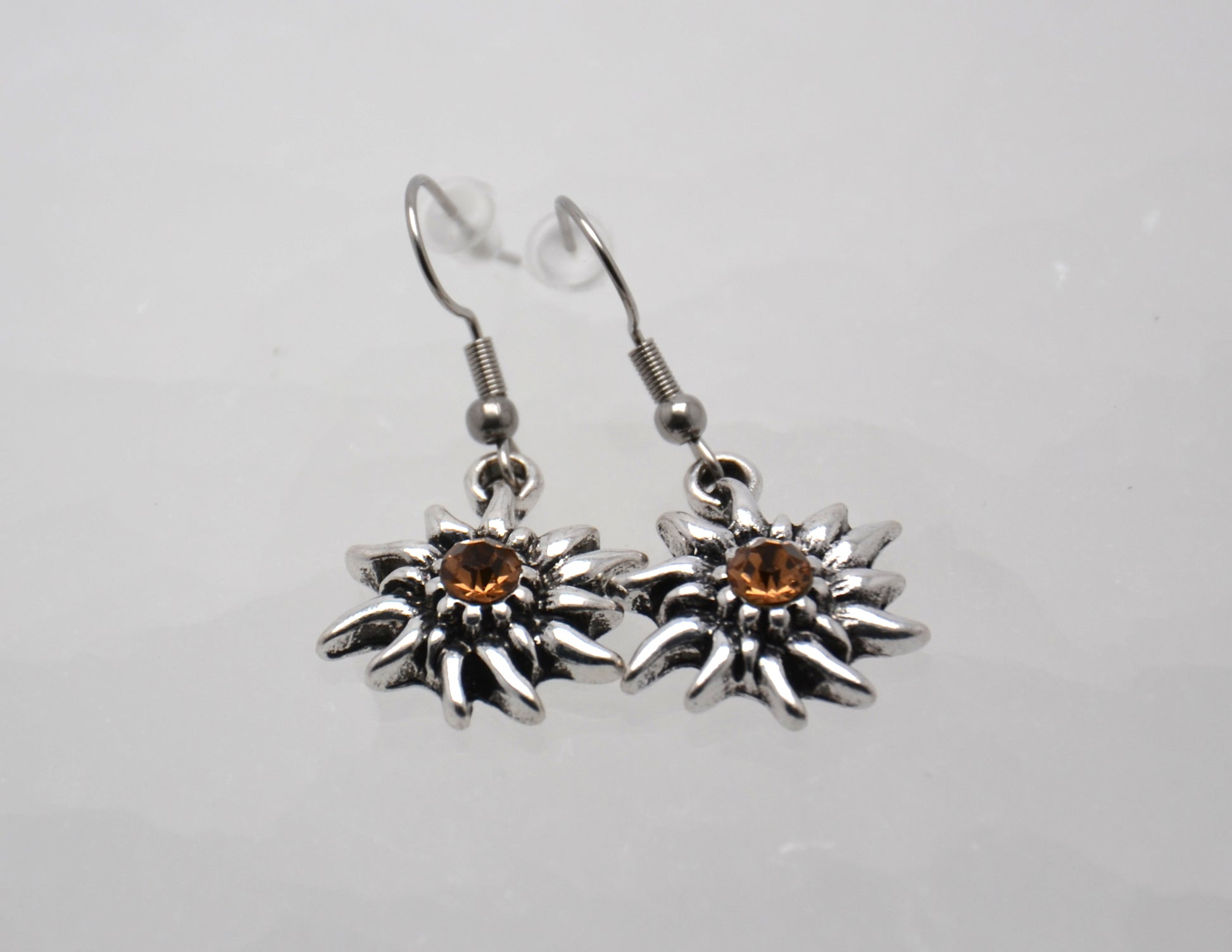 Neprehliadnuteľné náušnice, v tvare plesnivca s hnedým kameňom uprostred, sú nádherným doplnkom pre všedné aj nevšedné dni.