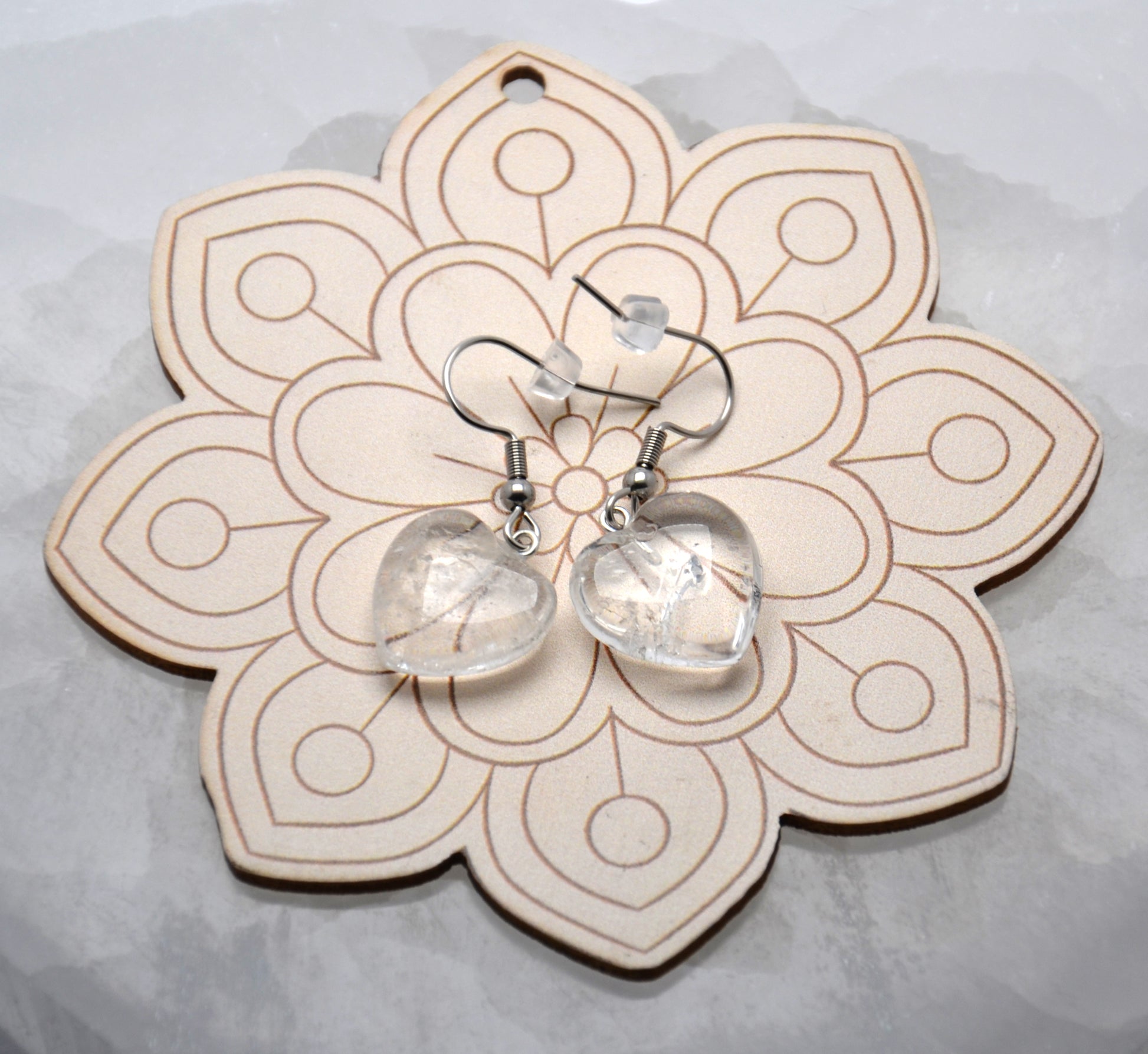 Jemné náušnice, v tvare srdca, sú nádherným doplnkom pre všedné aj nevšedné dni. Tvorí ich srdce z prírodného krištáľu a háčik z chirurgickej ocele.