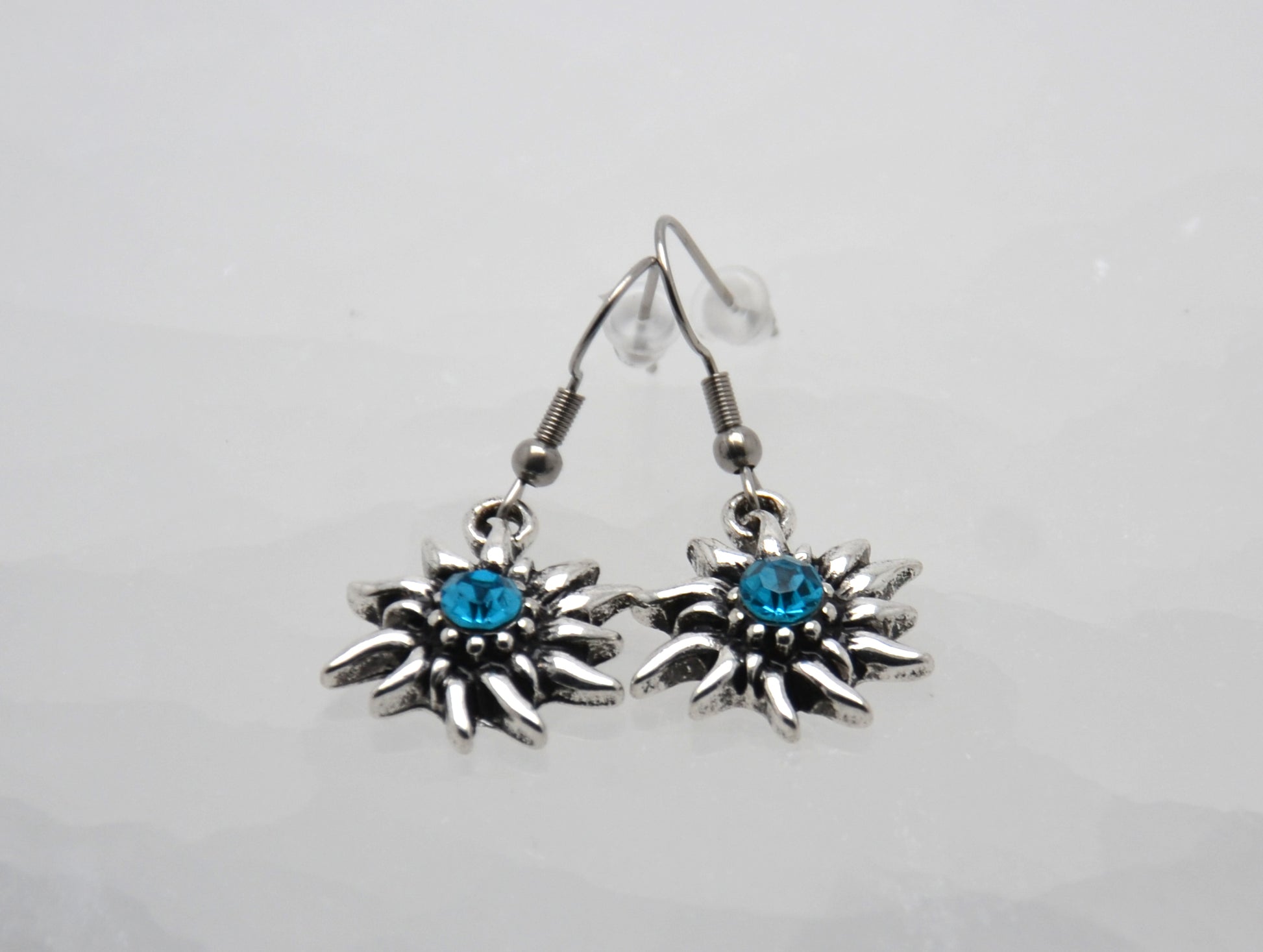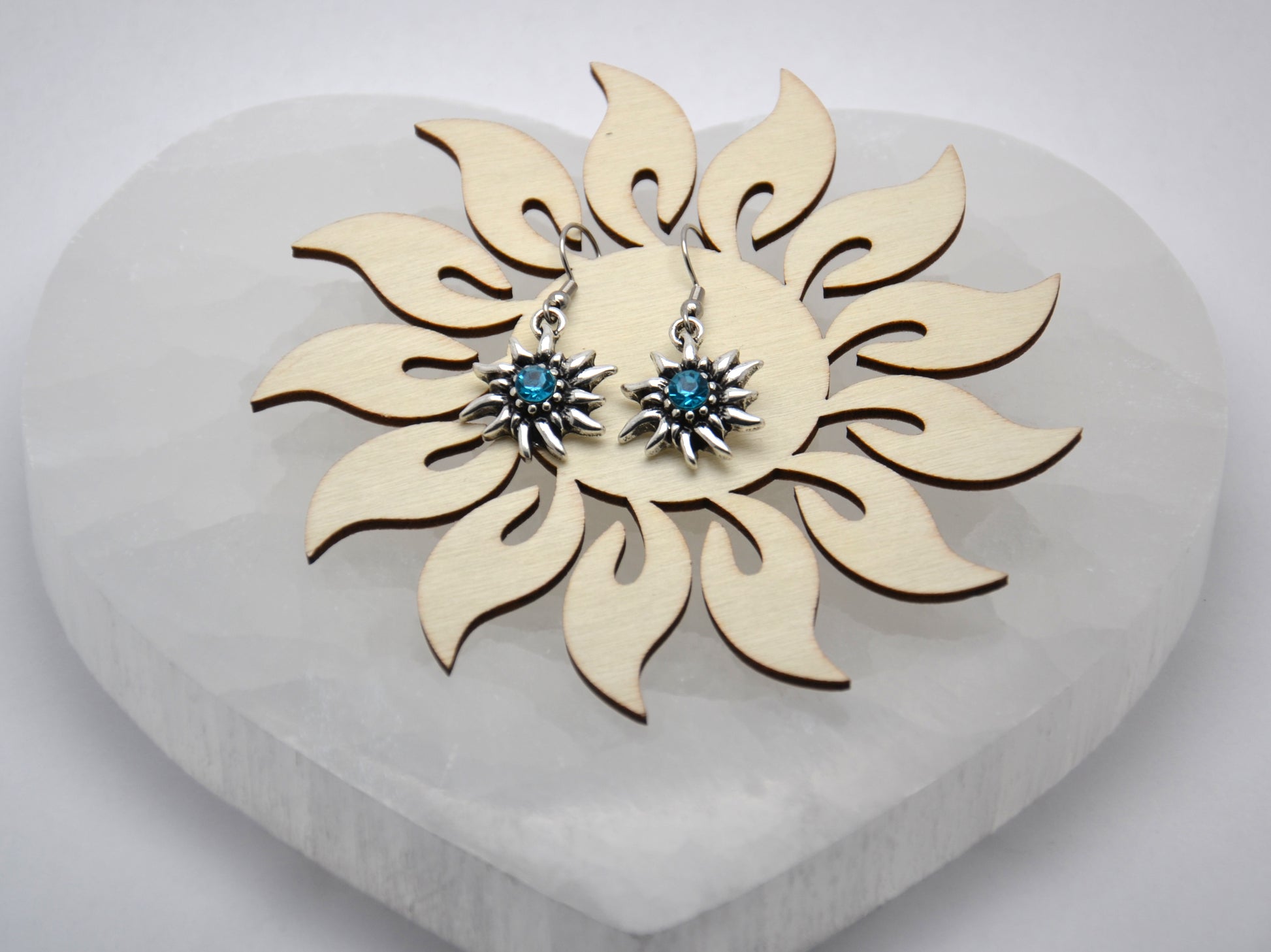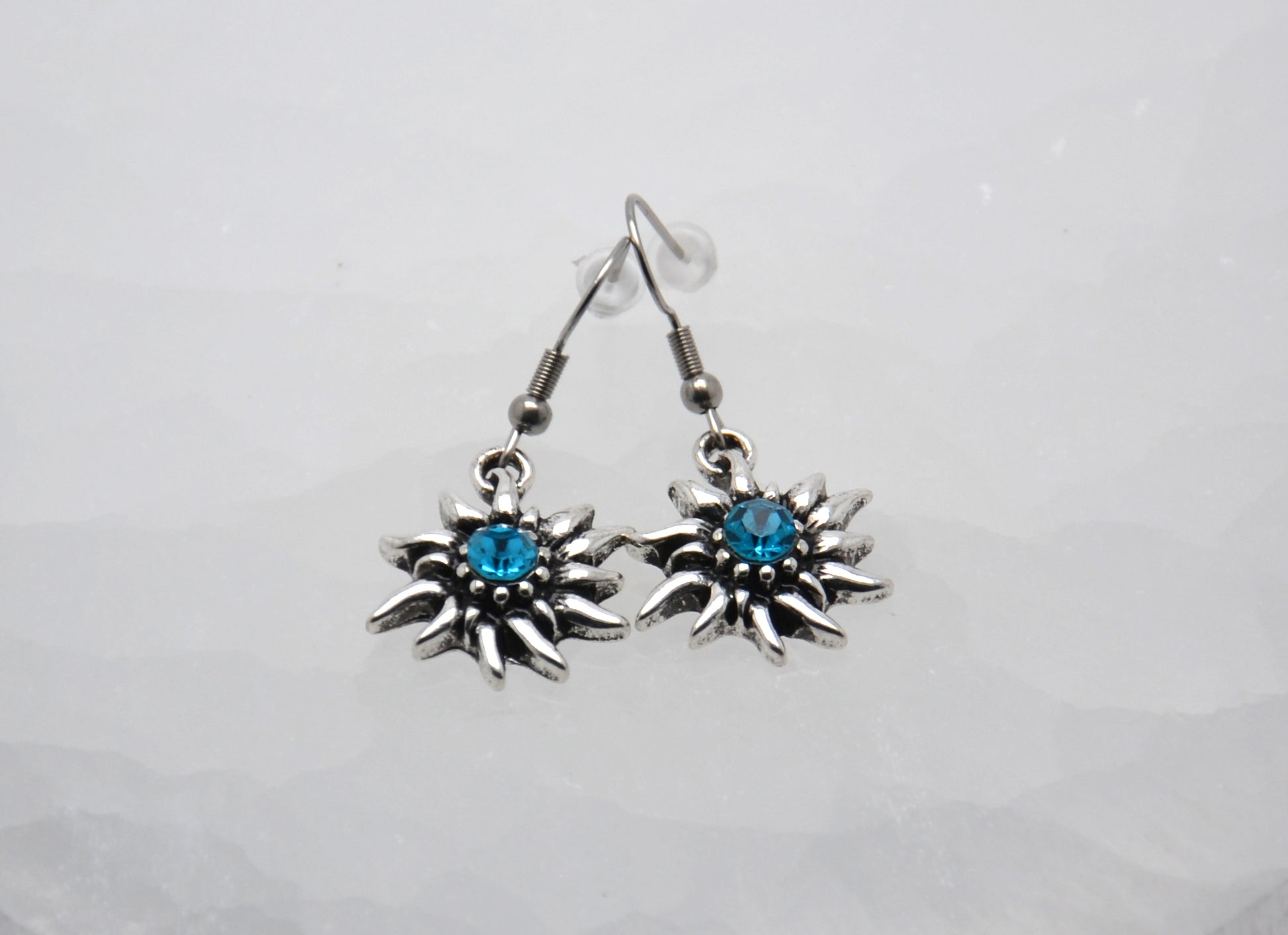 Neprehliadnuteľné náušnice, v tvare plesnivca s modrým kameňom uprostred, sú nádherným doplnkom pre všedné aj nevšedné dni.