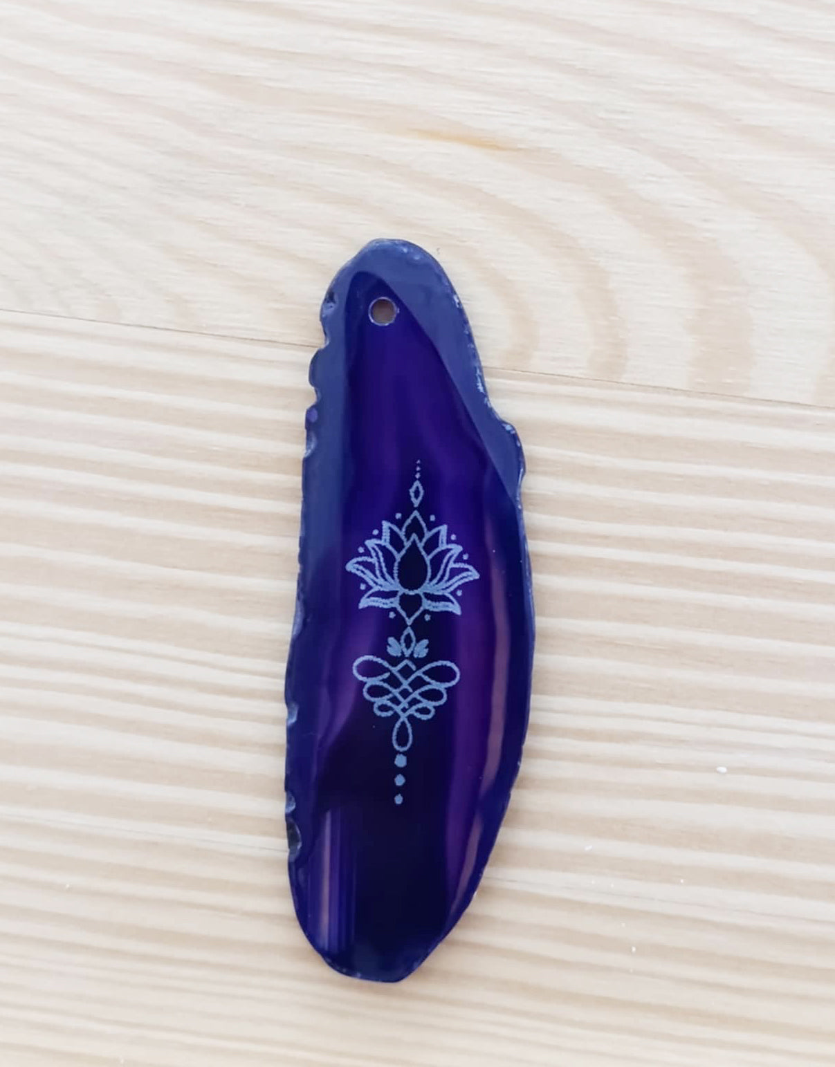 Veľmi pekný a jemný prívesok je tvorený z prírodného farbeného achátu s gravírovaným symbolom lekna.