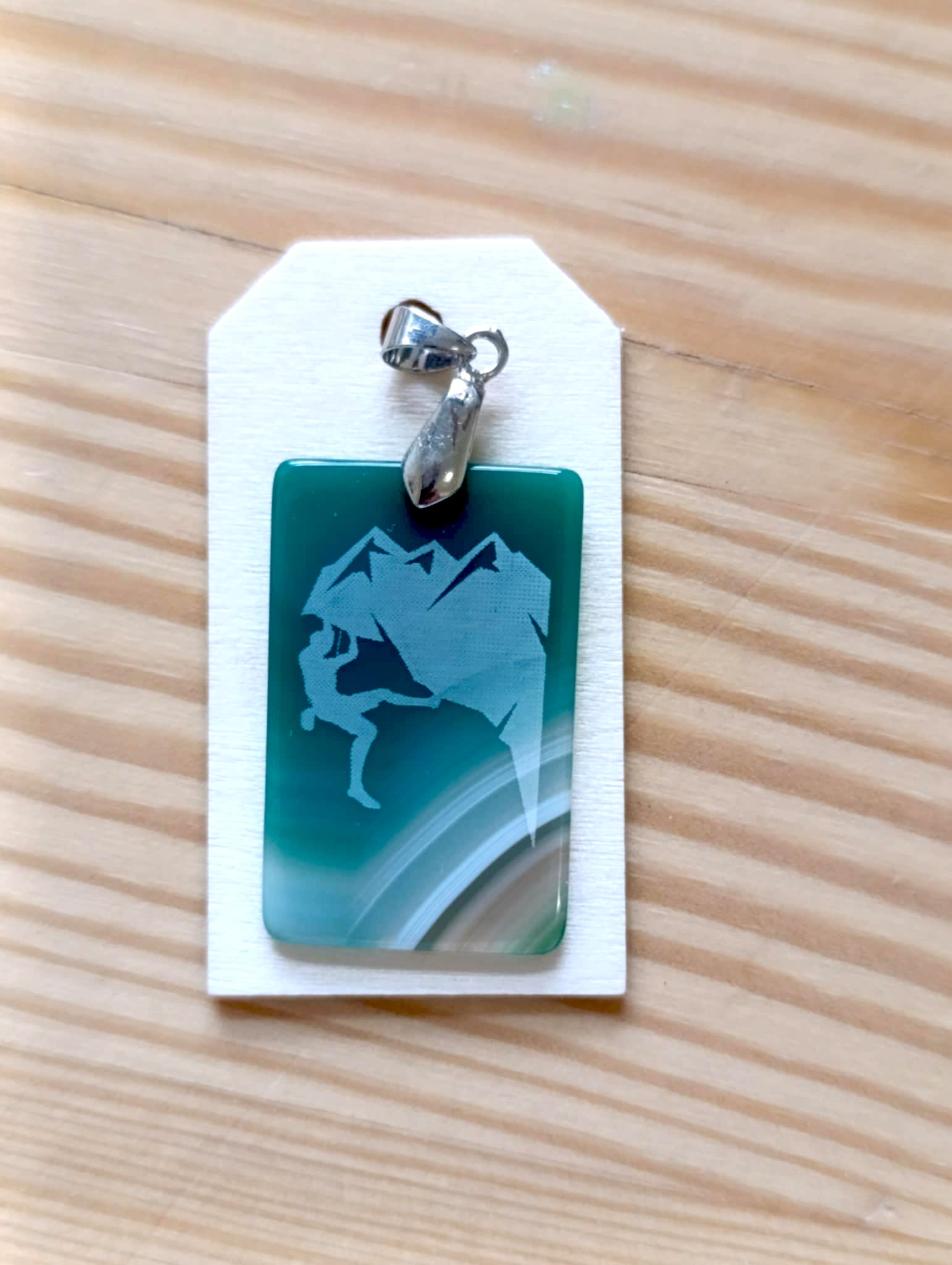 Prívesok je vyrobený z prírodného zeleného achátu, ktorý je známy ako kameň sily a stability.