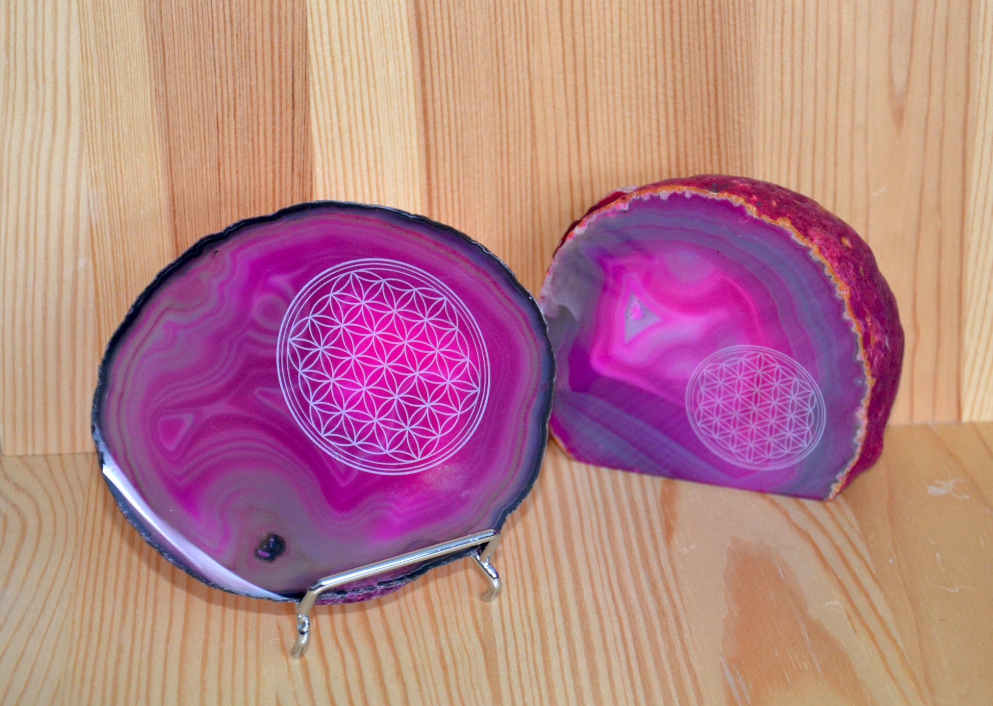 - Estetický vzhľad: Acháty majú prirodzenú krásu a vďaka gravírovanému motívu kvetu života získavajú spirituálny rozmer.